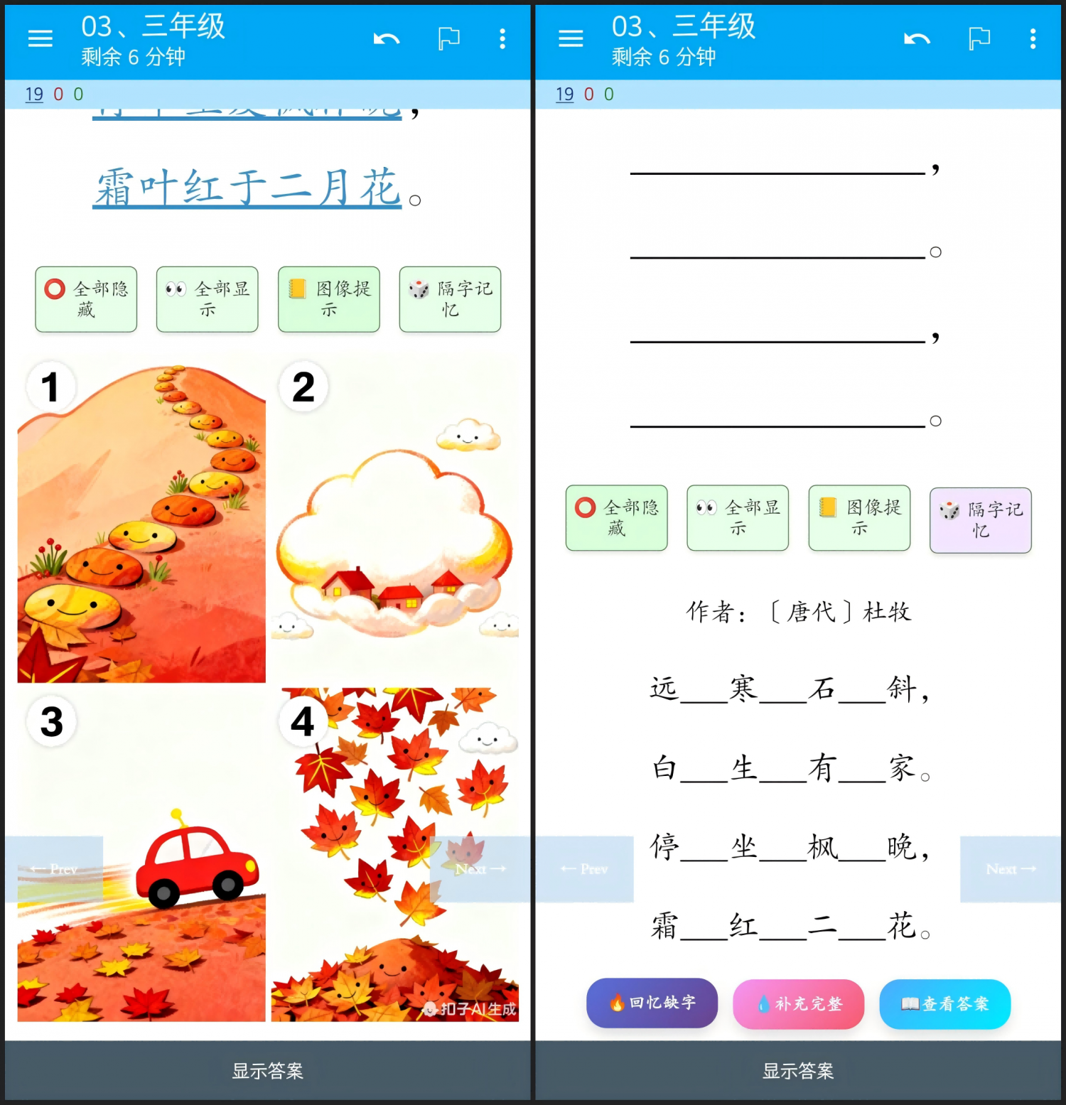✅图片提示(点按钮弹出对应诗句插画),像玩拼图一样记诗
