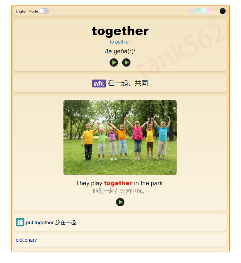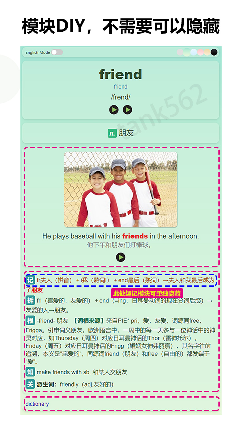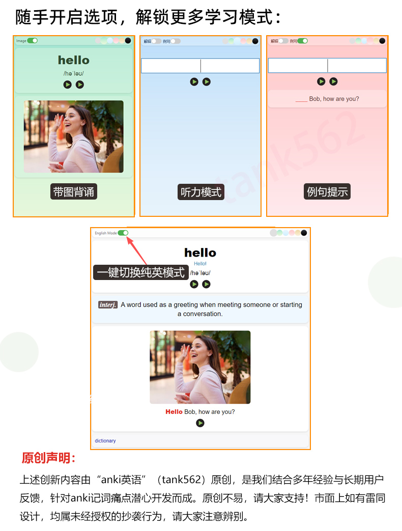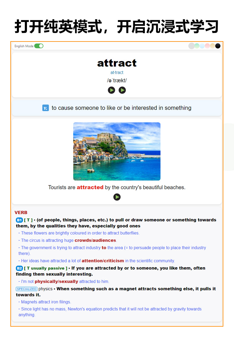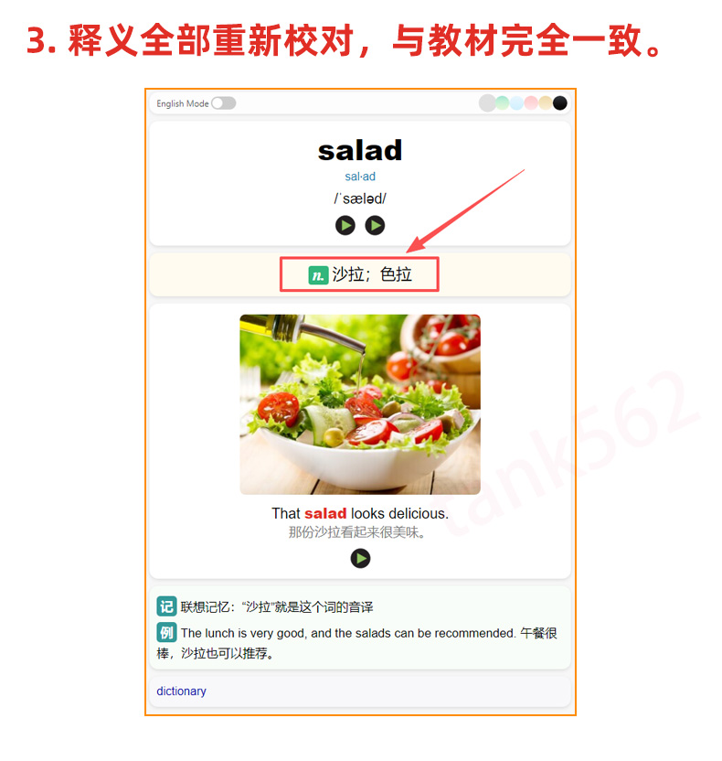 卡片严格按照课本上的单元顺序(非字母排序),细分至每个单元,集成了背诵和听写两个版本(可拓展为更多模式),既方便日常记忆,也便于随堂默写和预习。
