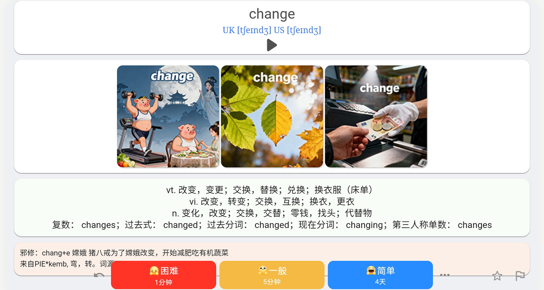 回答:是的。对于外来语种,我们要了解它的起源,所以我们优先选择词源记忆,这个是最科学的。但是,科学的不一定的最好记忆的,所以我们会辅以多维的记忆方式,例如,词根、词缀、谐音、拟声、联想、象形、邪修。我们的每个单词都配有至少一个记忆方法,可以从中选择一个适合自己的记忆方式。