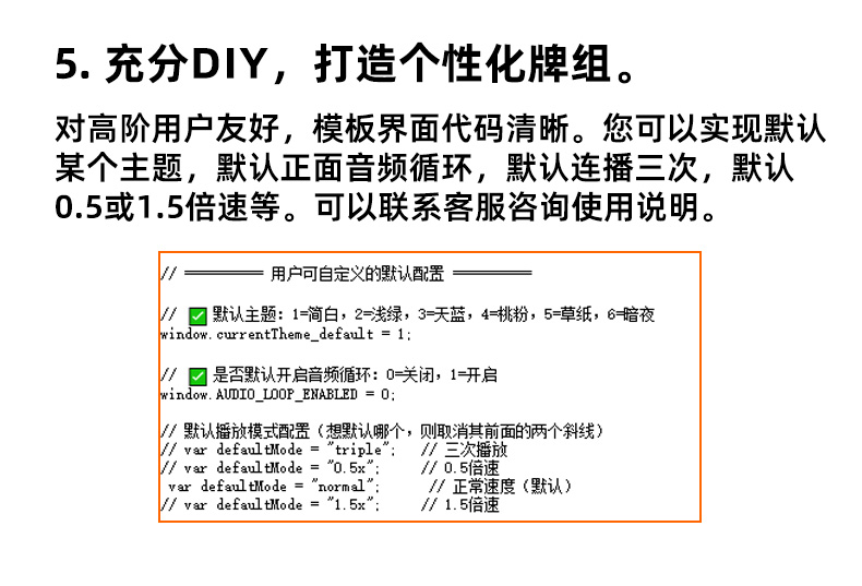 卡片分跟读版(正面英文)和默写版(正面汉语)两个版本,可以根据需要来使用。