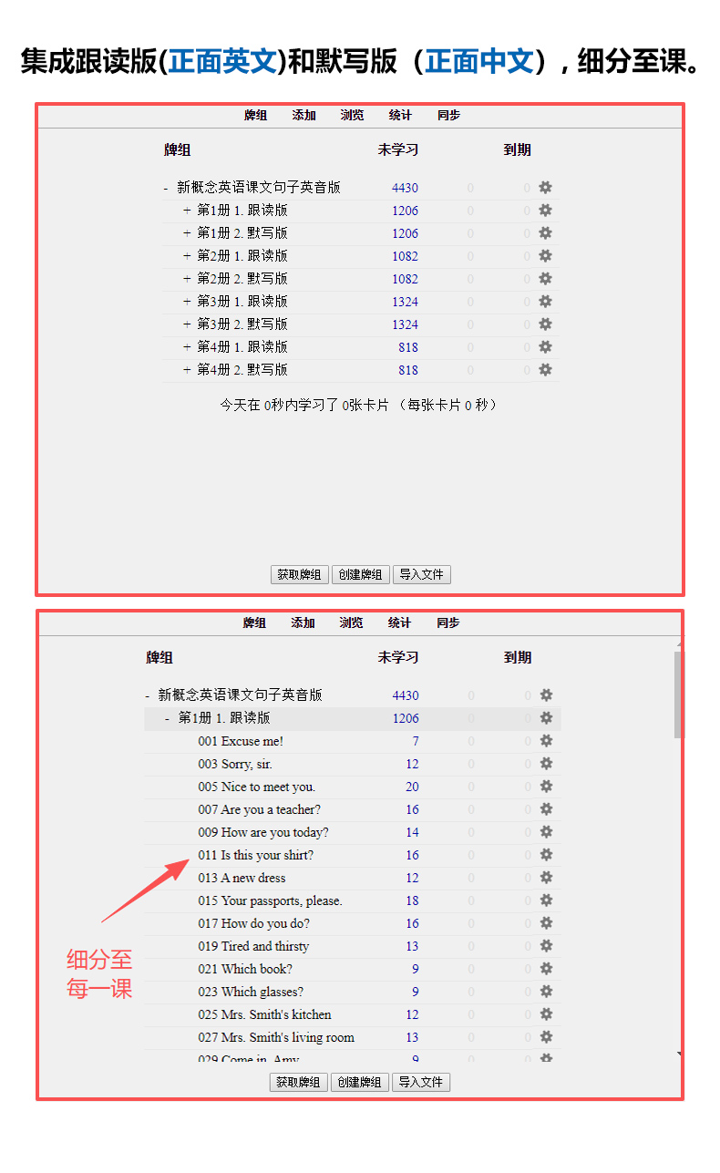 这是2026全新制作的新概念英语第1册课文句子,美音版本(原版发音)。一共1206句,2412张卡片。